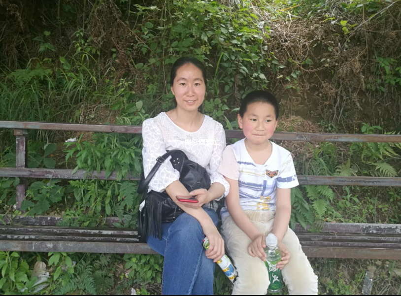 携子带夫游山岗,