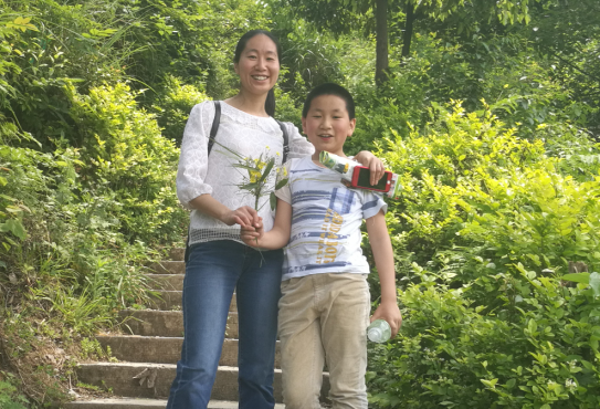 周末,一家人游外环背水山。